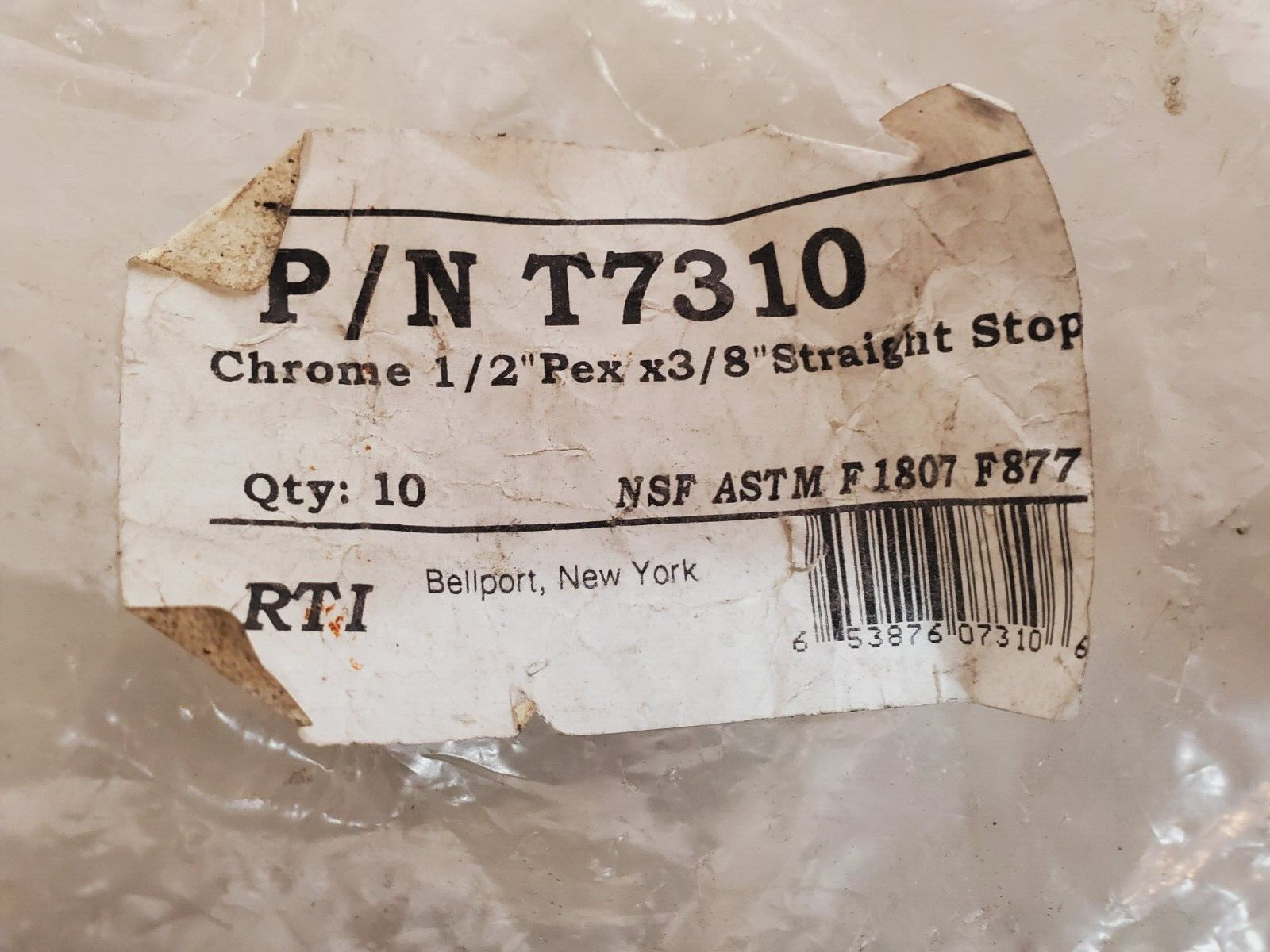 10 Quantity of RTI Chrome 1/2" Pex x 3/8" Straight Stop Valves T7310 (10 Qty)