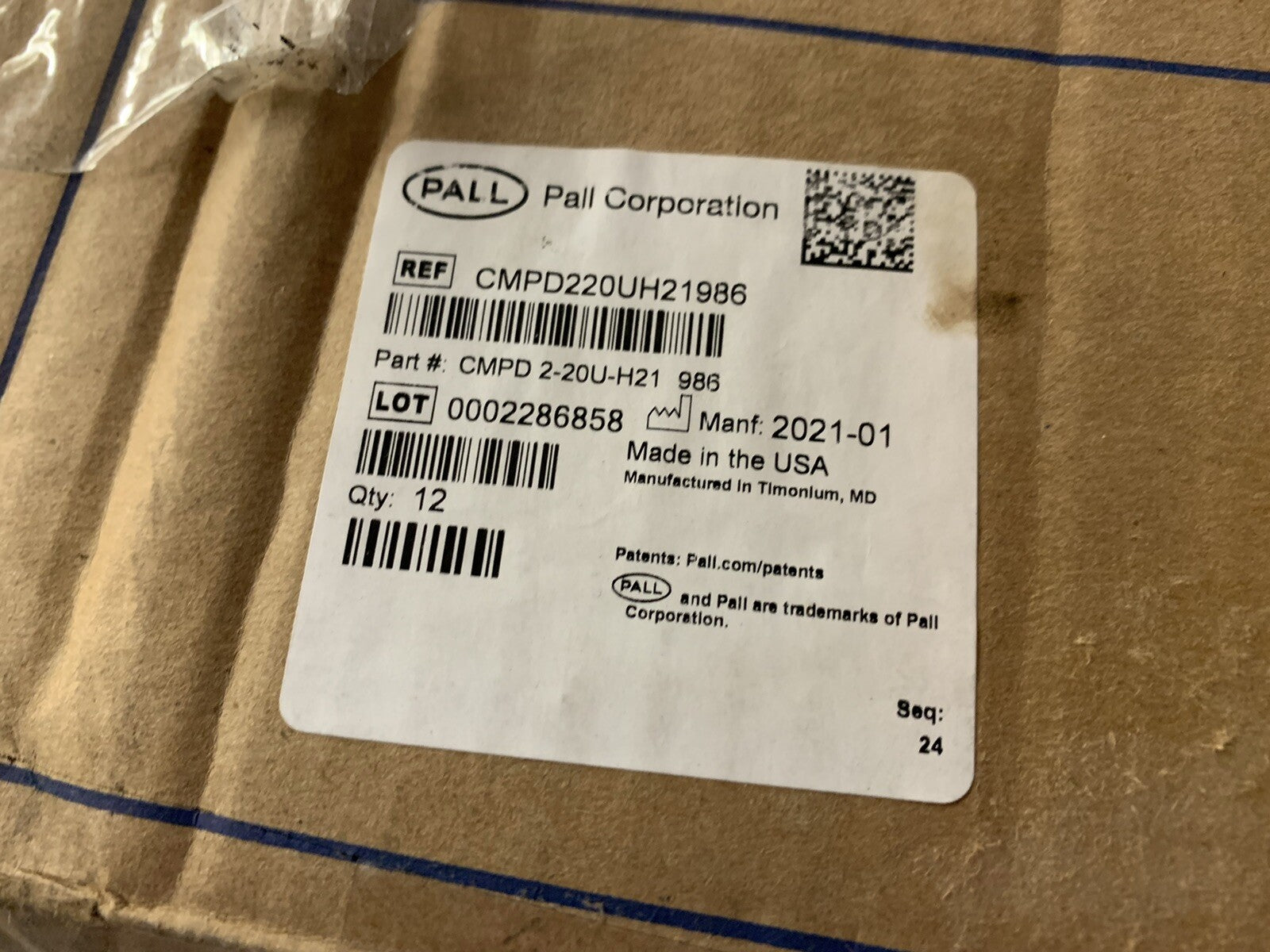 12 Pall CMPD 2-20U-H21 986 CMPD Series Filter Cartridges CMPure. Includes all 12.