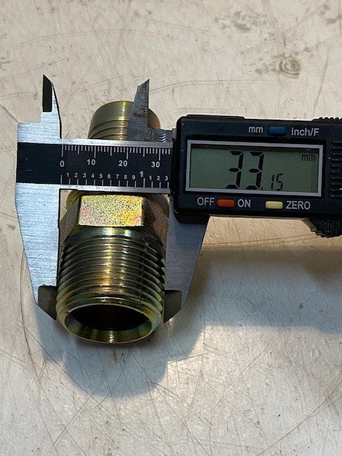 2 Qty of Hydraulic Hose Fittings 3-1/8" L 33mm Thread 27mm Nose 21mm ID (2 Qty)