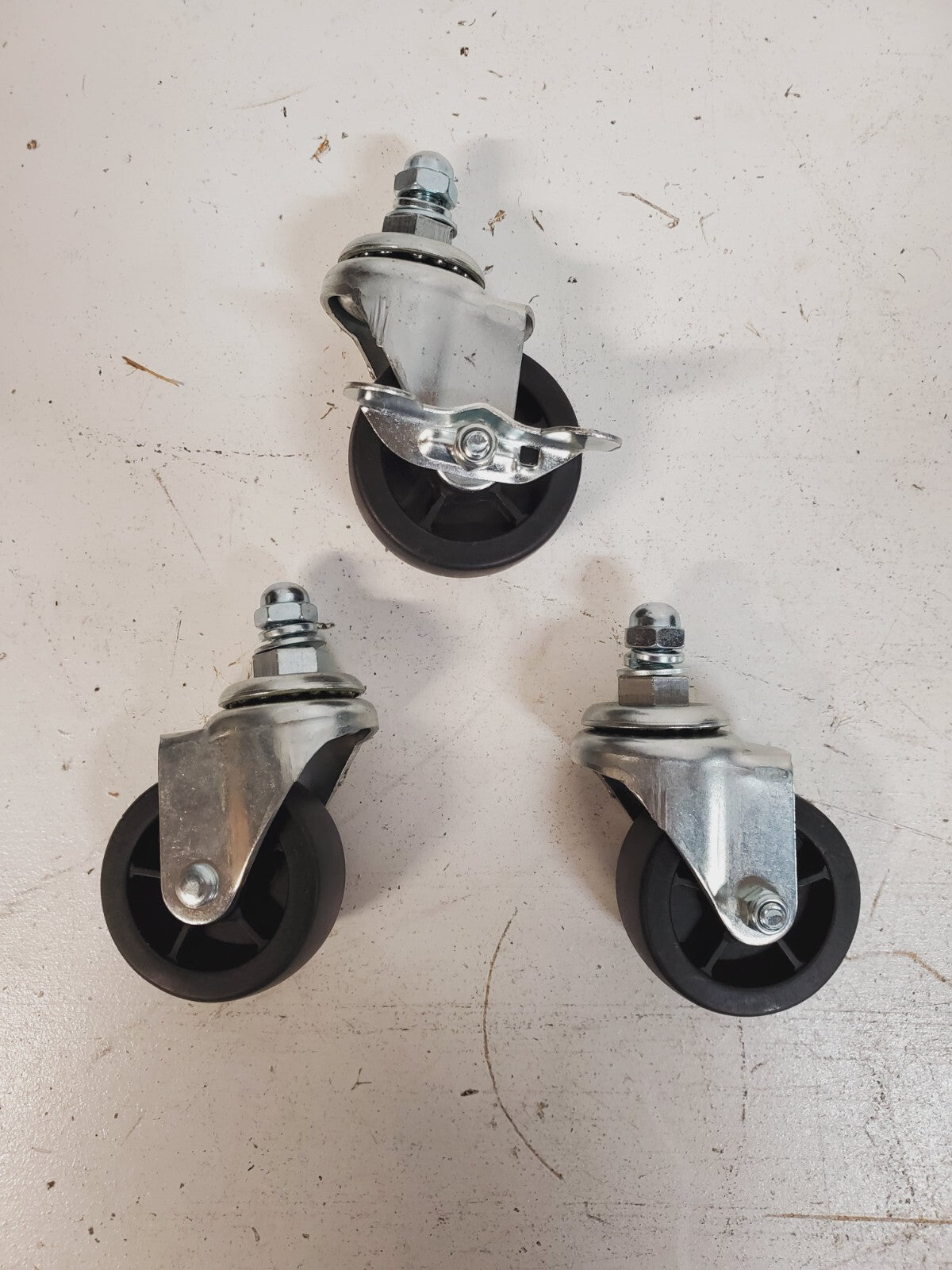 3 Qty of Swivel Thread Stem Wheels 3" (1 Wheel W/Break) Black (3 Quantity)