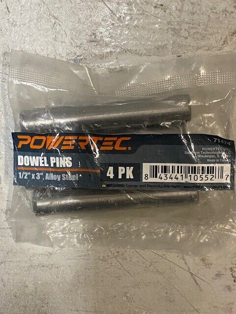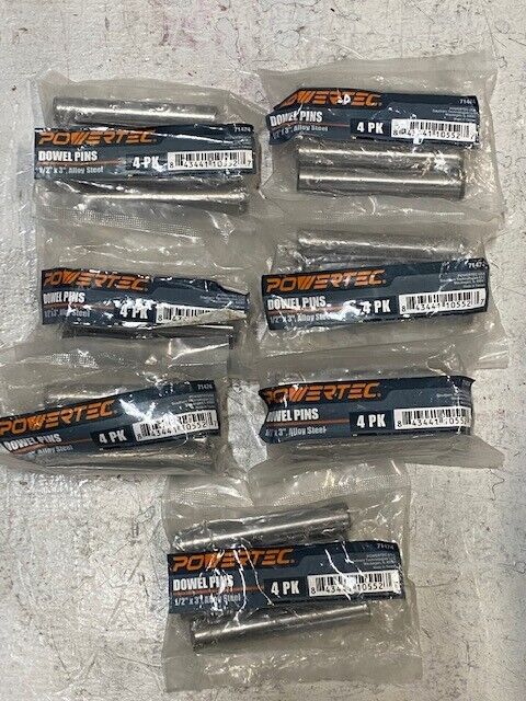 7 Packs of 4 Powertec 71474 Hardened Steel Dowel Pins 1/2" x 3" (28 Pieces)