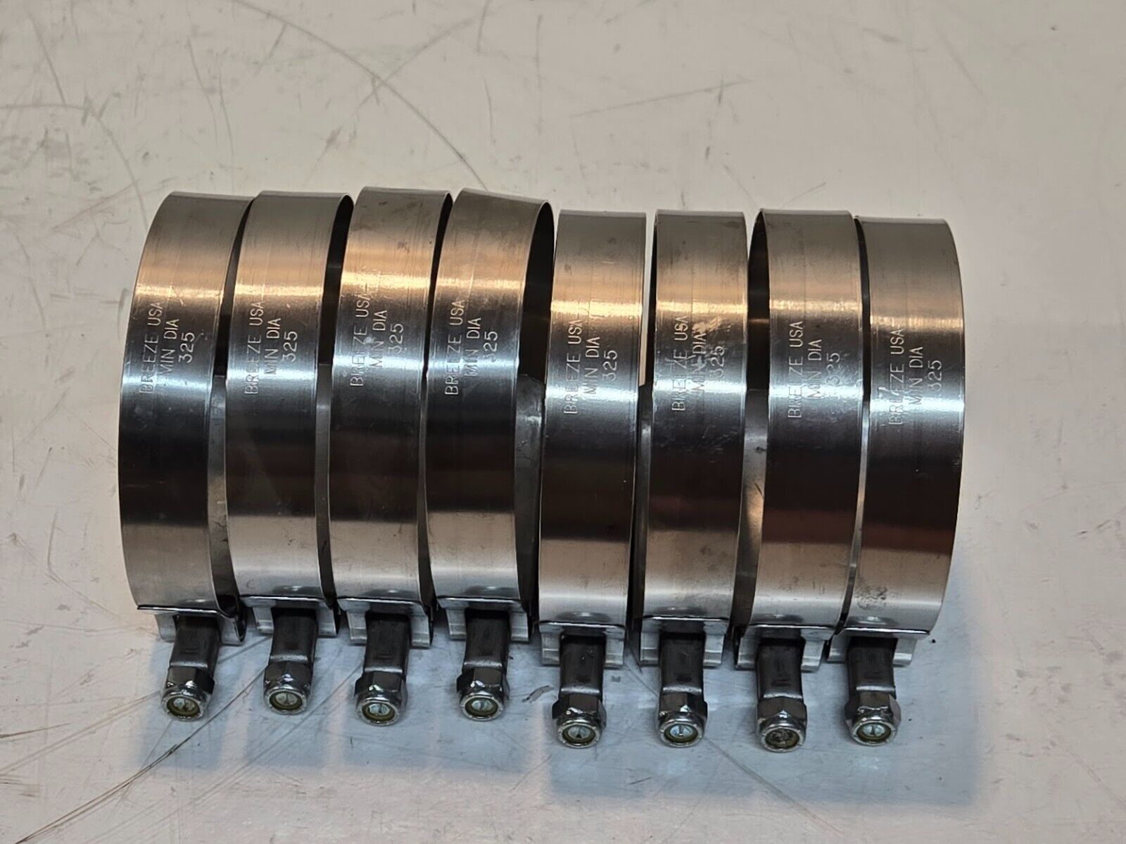8 Quantity of Breeze T-Bolt Hose Clamps Min Dia 325 Stainless Steel Band (8 Qty)