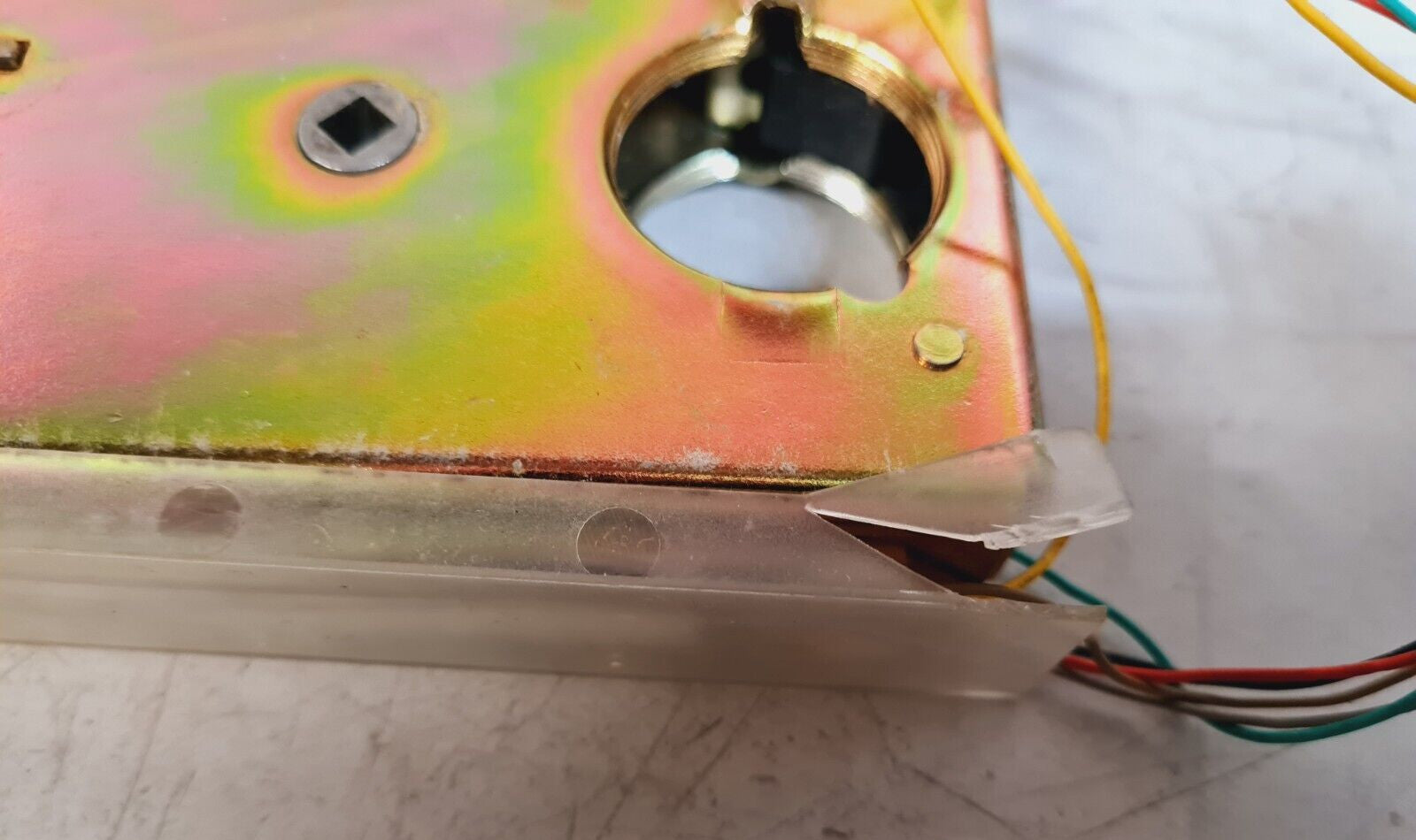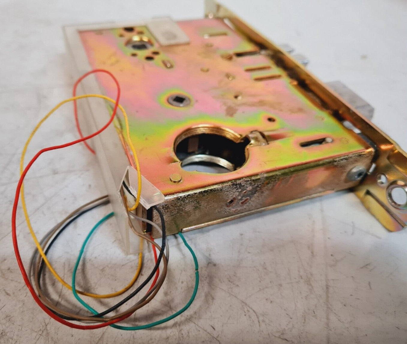 Without original packaging, it has a metal part slightly bent and damaged plastic, the yellow cable is cut, see the pictures.