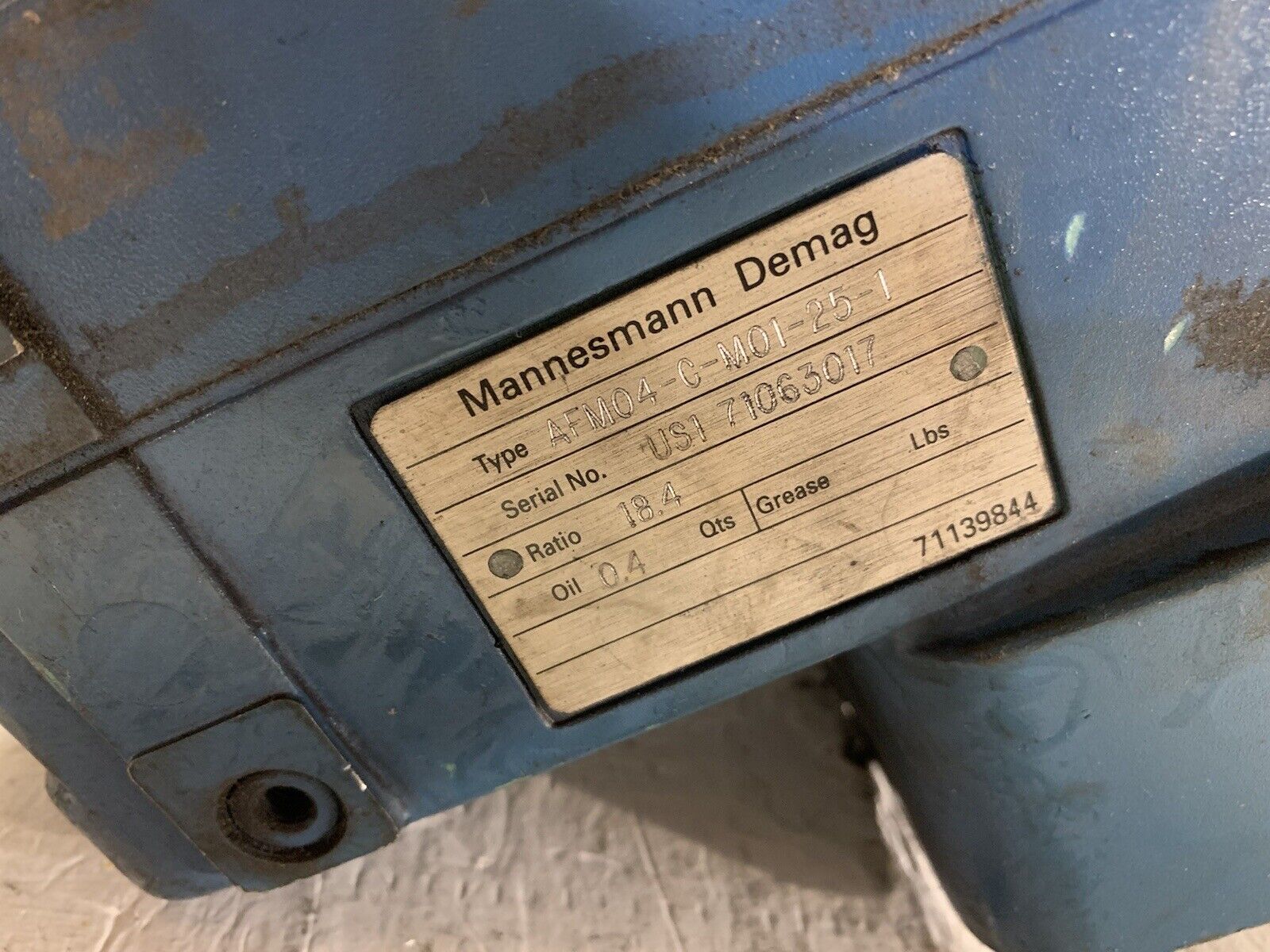 Mannesman Demag Offset Gear Box AFM04-C-M01-25-1 / Ratio 18.4 / 71139844.