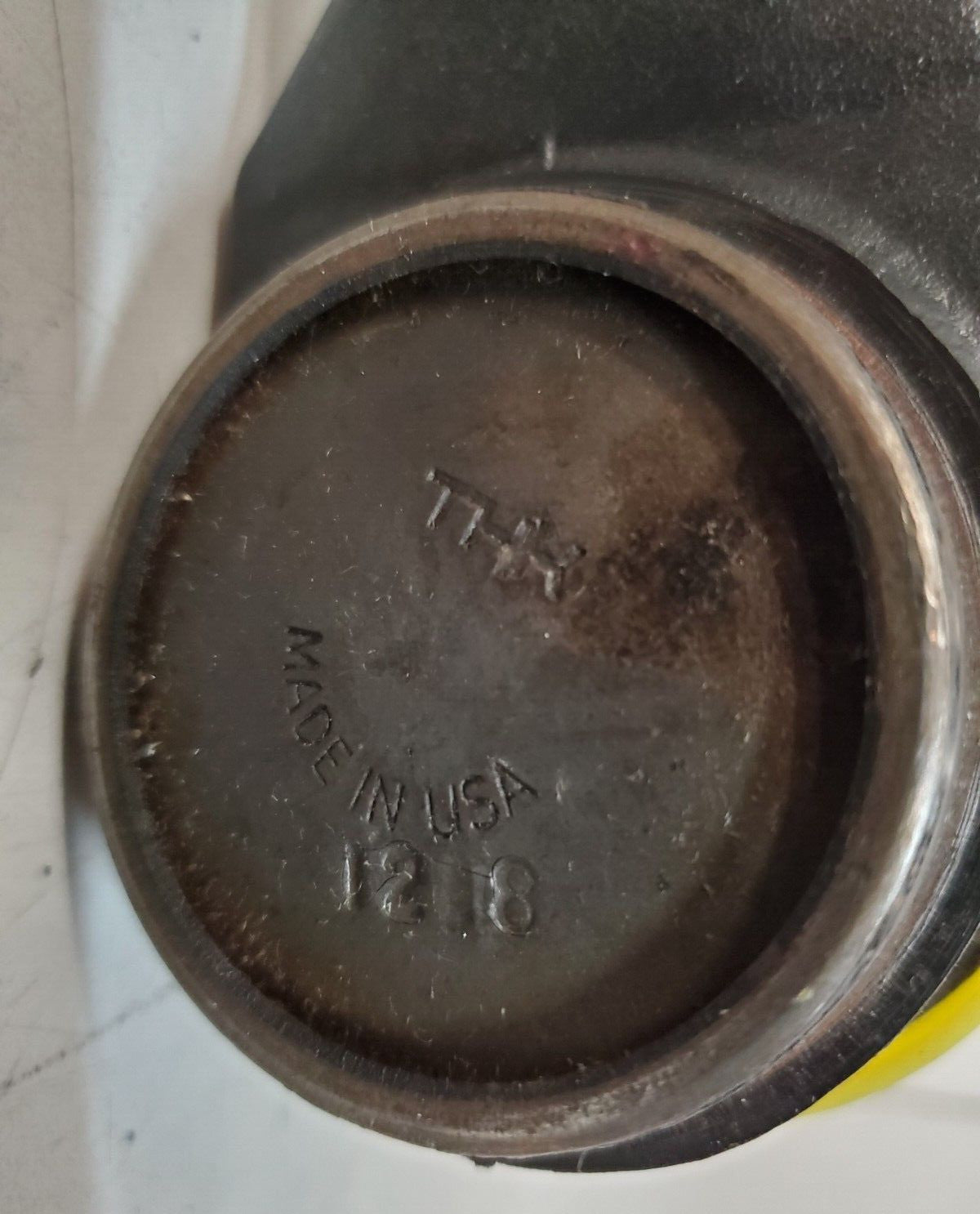 Has slight scratches and stains.